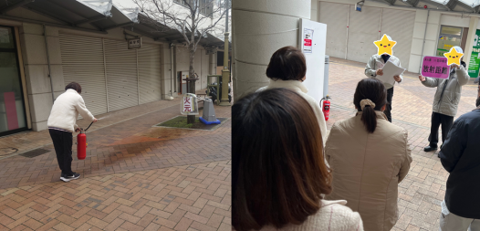 「火元発見!消化します!」と言いながらの消火器体験でした。