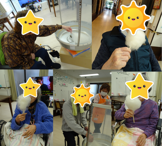 綿菓子を作る機械で自分たちで作った綿菓子を食べたり、職員が作ったのを食べたりしましたよ(*^_^*)